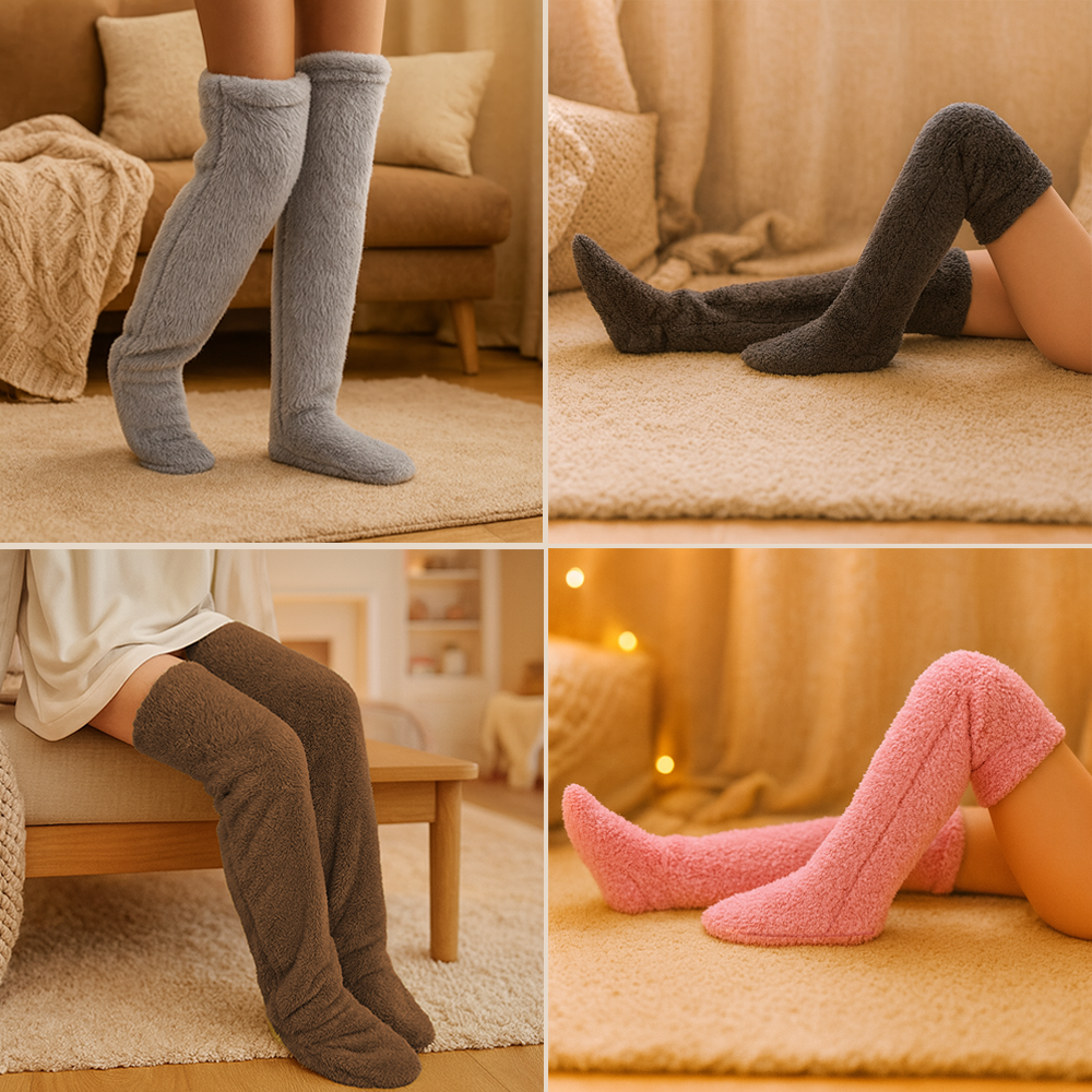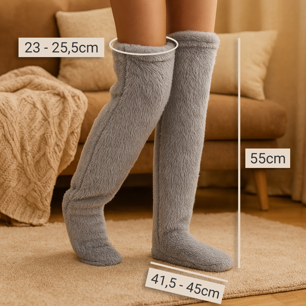 - Extra lange Overknee-Socken – umhüllen dich vom Fuß bis über den Oberschenkel in flauschige Wärme